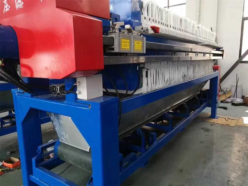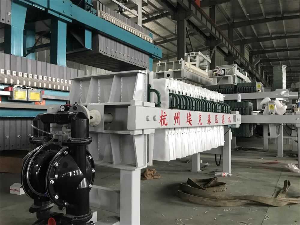 隔膜壓濾機(jī)和常規(guī)箱式壓濾機(jī)的主要區(qū)別在于,在濾板的兩側(cè)都增加了兩個(gè)彈性膜(復(fù)合橡膠膜是一個(gè)整體式膜。在操作期間,當(dāng)進(jìn)料完成時(shí),將高壓流體介質(zhì)注入膜中,并使整個(gè)膜膨脹以過(guò)濾濾餅,以進(jìn)一步使濾餅脫水,這是壓力過(guò)濾。在隔膜壓濾機(jī)運(yùn)行期間,液壓系統(tǒng)使用液壓油作為壓力載體來(lái)傳遞內(nèi)部壓力。